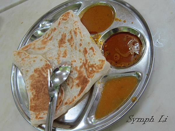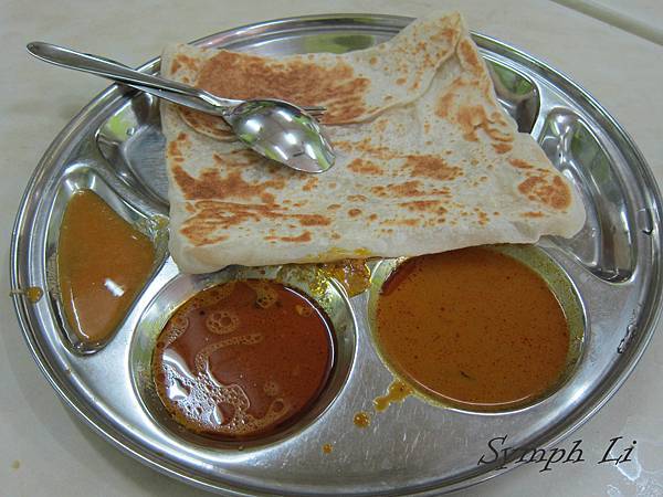 印度甩餅(Roti canai) 吃起來則比其他餐廳都要乾一點,